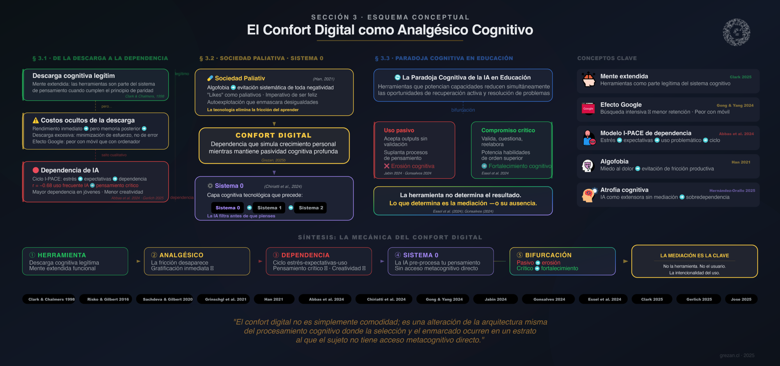 Acabas de leer cómo la descarga cognitiva se transforma en dependencia, cómo la sociedad paliativa evita la fricción y cómo el Sistema 0 filtra tu pensamiento antes de que lo actives.