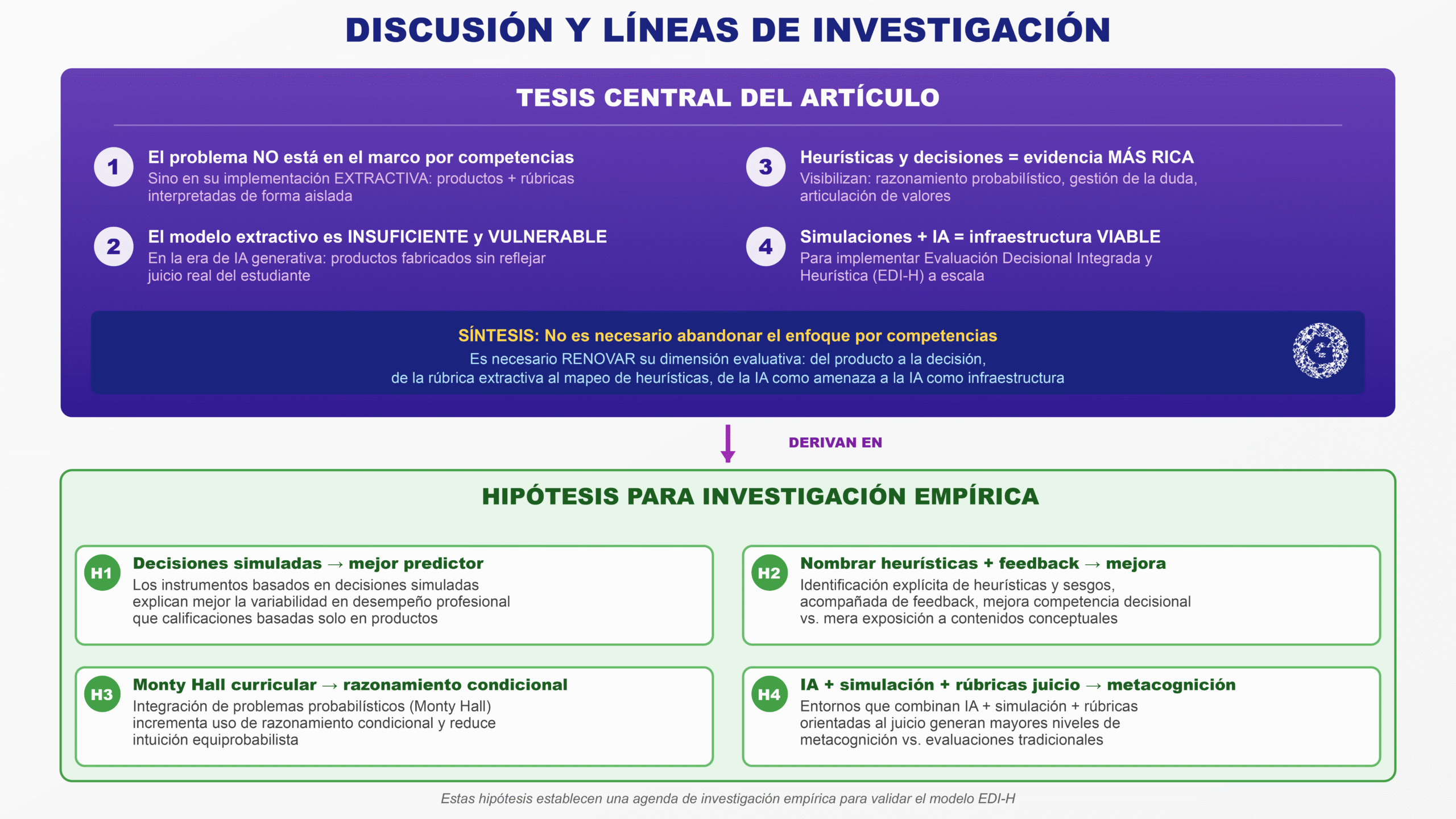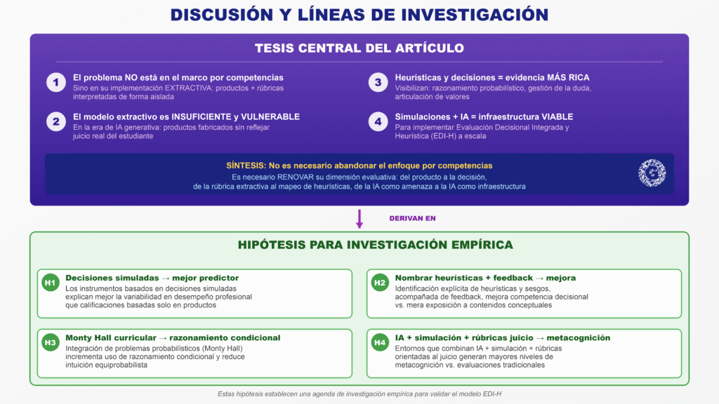 Frente a ello, se propone avanzar hacia una evaluación decisional y heurística de competencias, que observe explícitamente:
