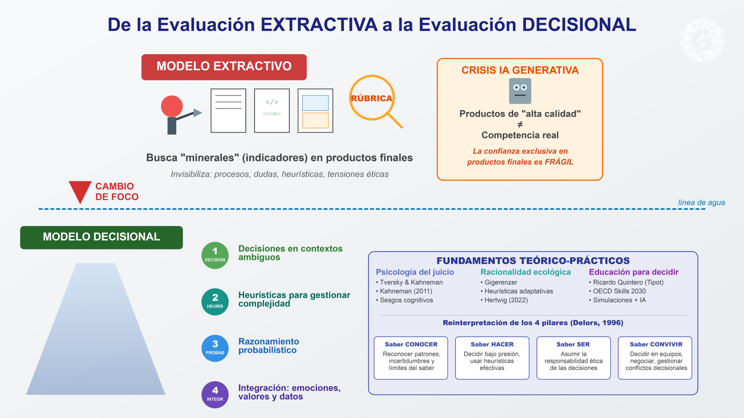 Hacia una evaluación decisional y heurística de competencias en la era de la IA: del modelo extractivo a un enfoque situado, andragógico y probabilístico