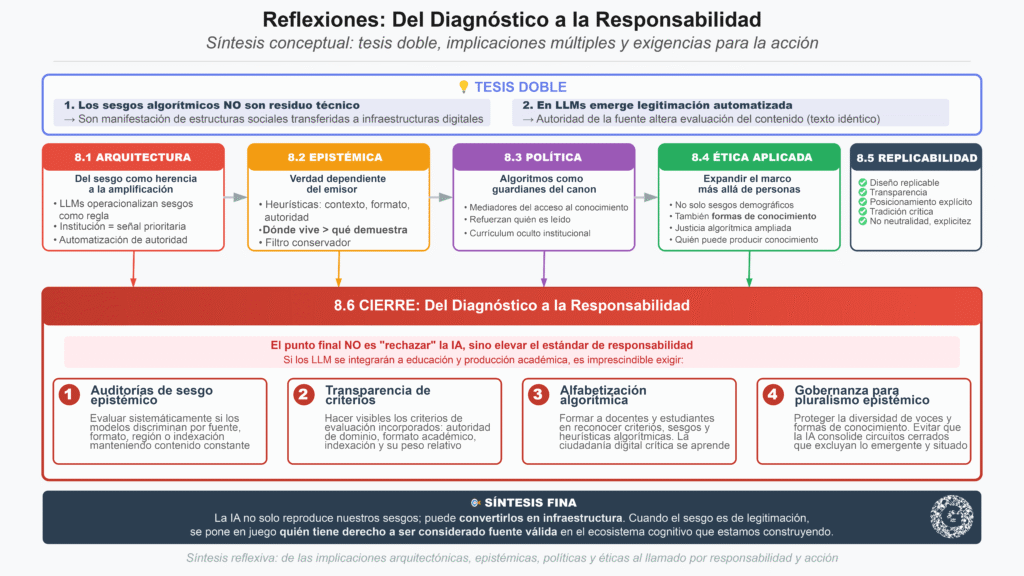 En síntesis: la IA no solo reproduce nuestros sesgos; puede convertirlos en infraestructura. Y cuando el sesgo es de legitimación, el riesgo no es menor: se pone en juego quién tiene derecho a ser considerado fuente válida en el ecosistema cognitivo que estamos construyendo.